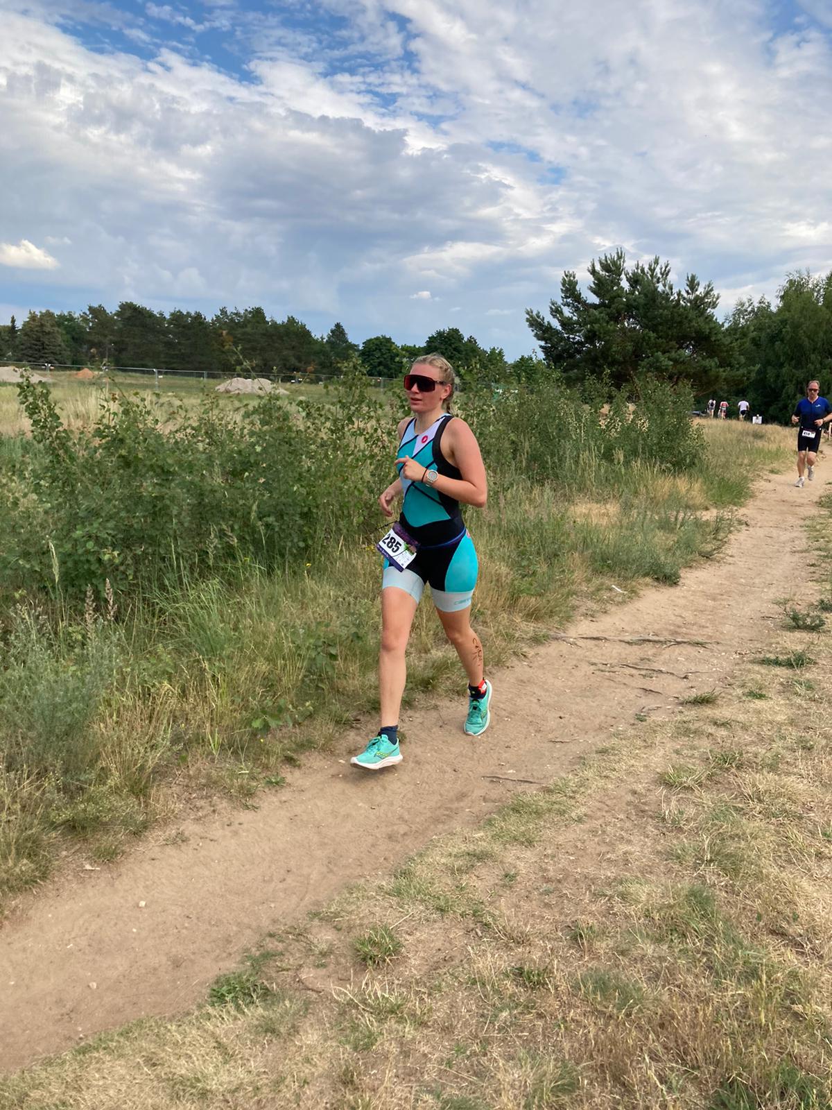 Bei beiden Wettkämpfen machte ich einen Sprint mit und Lisa bei der Jedermanndistanz. Am Bergwitzsee hieß das für Lisa 500m Schwimmen, 20 Kilometer Rad und 5 Kilometer laufen. Durch den Rolling Start konnte Lisa etwas ruhiger und besser Schwimmen als in Ferropolis und stieg als vierte Frau aus dem Wasser. Beim Radfahren konnte sie ihre Stärke ausspielen und fuhr bis auf den dritten Platz nach vorn. Beim Laufen ereilte sie dann leider erst das Seitenstechen und dann eine Frau mit einem Überholvorgang. Trotzdem lief sie souverän mit einer Endzeit von 1:10:37h auf Platz 4 ins Ziel ein.